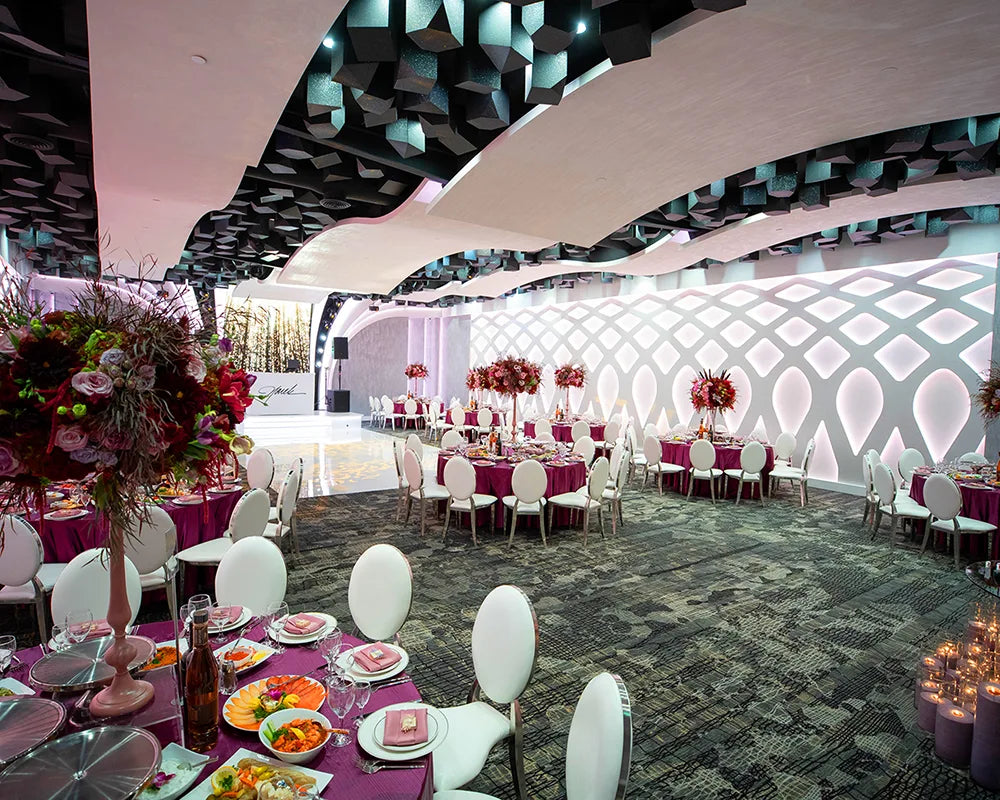 Every feature of our Modern Ballroom has been diligently fashioned to ensure an unrivaled sensory escapade. From captivating interiors and engaging music to our award-winning culinary offerings and tailor-made service. Let us usher you into a milieu that harmoniously intertwines the avant-garde with timeless elegance.