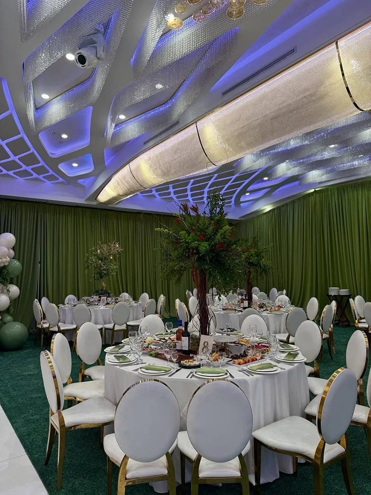 Every feature of our Modern Ballroom has been diligently fashioned to ensure an unrivaled sensory escapade. From captivating interiors and engaging music to our award-winning culinary offerings and tailor-made service. Let us usher you into a milieu that harmoniously intertwines the avant-garde with timeless elegance.